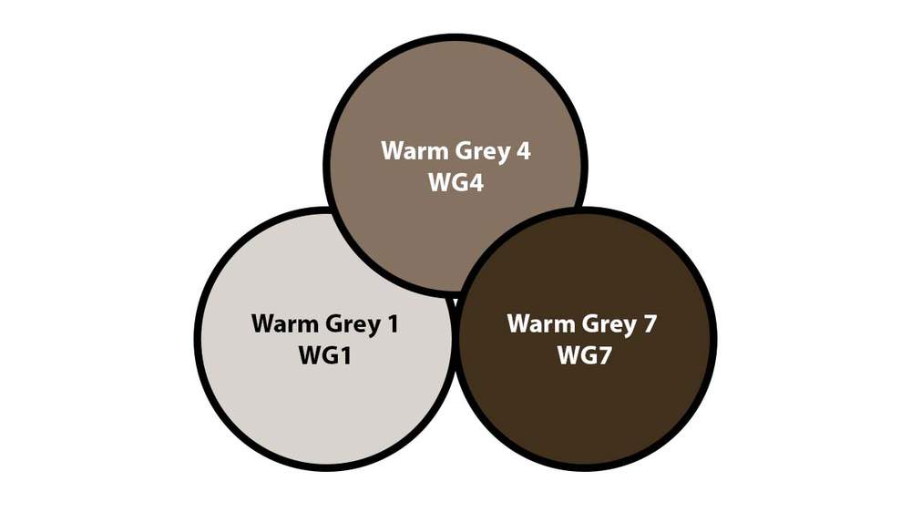 Warm Grey 1 (WG1), Warm Grey 4 (WG4), Warm Grey 7 (WG7)