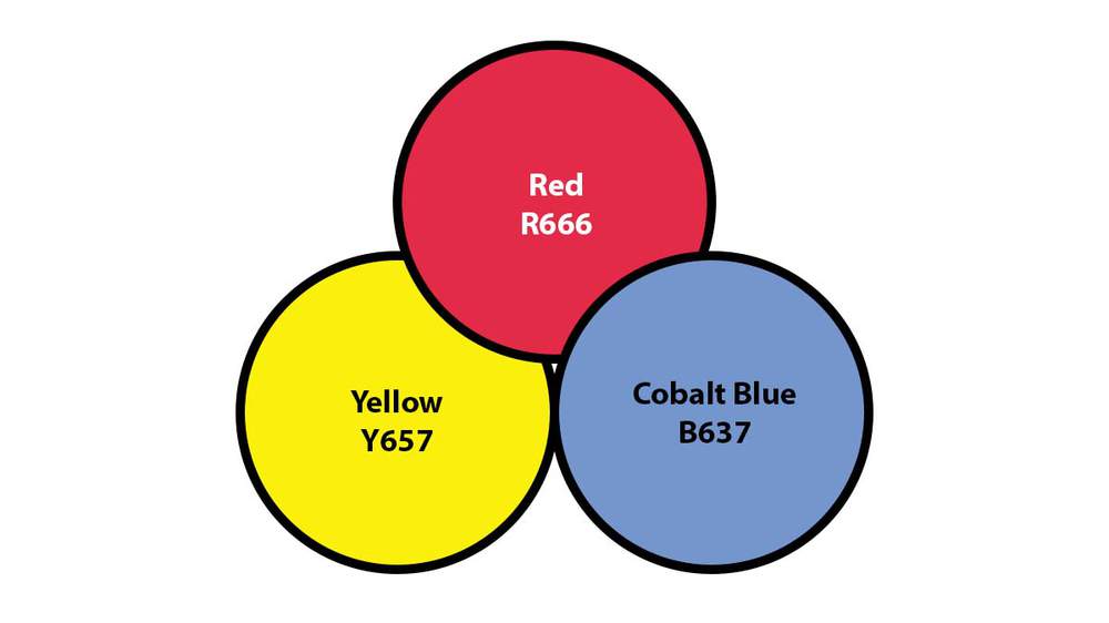 Yellow (Y657), Red (R666), Cobalt Blue (B637)